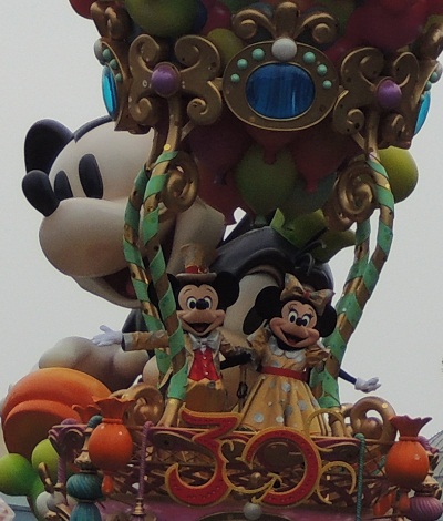 ディズニーランド30周年ハピネス・イズ・ヒアの写真です。 プーさんのハニーハントの後、ピーターパン空の旅、 ミッキーのフィルハーマジック、ピノキオの冒険旅行、 白雪姫と七人のこびとに乗りました。 グーフィーのペイント&プレイハウスは15分待ちで 小さな子が喜びそうな感じでした。 4月20日は雨天の為、エレクトリカルパレードが中止で 雨の日限定のミニパレード「ナイトフォール・グロウ」 だったので、残念でした。