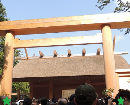 10月12日土曜日。伊勢神宮に行きました。 20年に一度の式年遷宮で大勢の参拝客で賑わっていました。 まずは天照大御神のお食事を司る神の豊受大御神をお祀りする 外宮から参拝しました。 二見浦の夫婦岩を見て、二見輿玉神社でお参りしました。 娘は海が好きなのか、海を見て一番喜んでました。 昼食は伊勢うどんとてこね寿司を食べました。 天照大御神をお祀りする内宮を参拝しました。 五十鈴川に架けられた宇治橋を渡って、鳥居に一礼し、 五十鈴川御手洗場で手を清め、風日祈宮でお参りすると 正式参拝だったのですが、風日祈宮は参拝してないです。 正宮も凄く混んでいて、石段の下まで人が並んでました。 新宮に参拝した後、旧宮の周囲をぐるっとまわって、 荒祭宮にお参りしました。 パワースポットの籾だね石に手をかざして、 神楽殿でお守りを買いました。 おはらい町通りで赤福を買って、お土産を買い、 おかげ横丁を見物して帰りました。