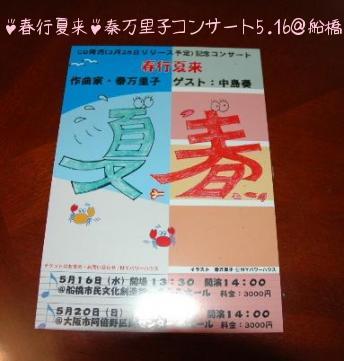 ・・・ いよいよ・・・ 待望のCD発売記念コンサート♪春行夏来♪3月6日 啓蟄、大安この良き日に いよいよスタートいたします。[ご案内]5月16日(水)@船橋市民文化創造館 きららホールJR・京成・東武船橋駅前ドレスコードは「花のように・・」花のようなあなたはおいでになるだけでOKね5月20日(日) @大阪市阿倍野区民センター小ホールどちらも 午後1時半開場 二時開演 料金 3000円 嬉しい事に、各界注目で追加公演となった代々木Hakujyu Hall3月30日と地元凱旋公演となる藤沢市民会館4月13日に続いて 千葉と大阪で開催できることになりました。お近くの会場で「主婦が主婦のための主婦の歌を歌う」 秦 万里子をお楽しみください。もちろん、全公演追っかけてくださるのも「大歓迎!!」わたしも追っかけますわよ~。一緒に「がはは」と笑って、ちょっと泣いて、「今日にありがとう!」と感謝して元気と優しさを充電いたしましょう。追っかけツアー、スタンプラリーなどいかがでしょうか♪3月28日発売のCDの予約及びチケットのお申し込みは NYパワーハウスにどうぞ。TEL:090-6038-2481 FAX:03-5549-2134E-MAIL:nakamura@nypowerhouse.com「主婦が主婦の歌を歌って主婦を応援する秦さん」を主婦が応援してコンサートを開きます。あなたにはわたしを応援していただけると大変うれしゅ~ございますお申込みお待ちしています。 ♪秦 万里子さんのHPへは↑こちらからどうぞ♪「歌って書いて、聞いて読む」秦万里子の新♪聞日記 毎日一曲新曲誕生!4曲無料配信中! みなさん、毎日聴いてます?聴かなきゃ・・・もったいない!もったいないでございます!!NEW!明日までの探し物あちゃ~、ついにわたしの曲?いや、あなたの曲かもね。2007.3.4 ひとつからひとつひとつがあつまった~ひとりひとりがあつまった~あなたとわたしが始まりかもしれない・・・卒業式と謝恩会が終わった翌日、HATACHIに会ってきたあと更新された曲聞いたとたんにじ~んでした、秦さん、これわたしのテーマ曲みたい(笑)2007.3.3 同窓会女3代のお雛様・・今日はお雛様の同窓会・・・うちもいそがしくて、今年も私の御雛様だせなかったな・・・2007.3.2 卑怯肝心のところで黙る・・・あなたは卑怯・・と女は責める・・・あなた..それはカーナビ君 ぜひ、聞いてくださいね