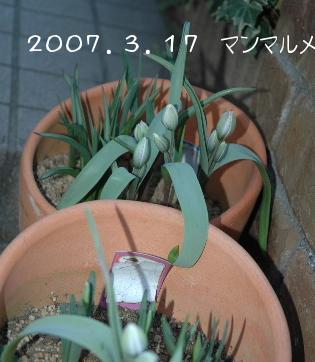 日経新聞文化面や朝日新聞のAERAでも紹介された「歌って書いて、聞いて読む」秦万里子の新♪聞日記 2007.3.25首都高は時価<そっとしておきませ・・>今日の滑りはどうですか・・・はい・・・SP後の真央ちゃんへ<いつ買えるかなあ・・>3種の神器、あなたはいくつ持ってます?とっても楽しいので是非聴いてみてくださいね♪今日はとっても暖かかったからお庭の手入れをいたしました。ここでお茶をするにはまだすこし陽射しが足りませんが・・・秋に植えた球根がフェイント気味に咲いておりました。これは確か、原種のチューリップ♪この鉢にはまだ何種かの球根が眠っているはずです。小さな小さなお庭ですが、庭仕事をはじめるとあっというまに時間が経ち暖かさにつられて、ファビアンとお散歩したりしてたらあっというまに夕方になってしまいました。バラも日増しに、芽を出して、そろそろ舞台の準備が始まりだしました。