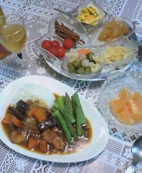 日経でもAERAでも、スーパーニュースでも紹介された秦 万里子さんの新♪聞日記 ↑こちらをクリックして秦さんが歌で綴る日記お聞きください。秦さん、なんかいろいろたいへんそう・・がんばって!秦 万里子さんのスケジュール、間近で近場なスケジュール♪<2007/6/26(火)>雨に歌えば 梅雨に笑えば@リーガロイヤル東京3F ロイヤルホール2 13時~15時料金:5000円(特選デザート、飲み物付き、税込み)お得よね~、ぜひ参りましょ。◆お申し込みはリーガロイヤルホテルへ 03-5285-8962 <2007/7/1(日)>遺跡の森出土コンサート 作曲家・秦万里子 中島奏(ゲスト)濱中祐司@埼玉県美里町遺跡の森館 13:30開場 14:00開演料金:前売り2500円 当日3000円コンサート案内のページ:http://www.town.saitama-misato.lg.jp/event/morikan.htm◆お申し込み 美里町遺跡の森館:0495-76-0204 ここ、とっても素敵なホールだそうです。御近くの方是非どうぞ、いらしてみて、秦さんの元気もらえるチャンスです♪ひさしぶりのお夕飯画像・・・簡単極まりないカレーです今夜はカレー、カレーだけ・・・カレーだけだから、トッピングは冷蔵庫のありったけを盛り付けました。ひさしぶりにワインを開けました。かなり前に買ったデイリーワインCHATEAU BEAULIEUCOTEAUUX D'AIX-PROVINCEちょっと違うけどまあいいや~、なんだか弱くなった気がします。今日のバラの作業は、お水をあげと、木酢液に緑豊という生薬を入れて散布。1Lに木酢液3ml 、緑豊1ml、一時間ほど馴染ませている間にファビアンのお散歩。カレーを仕込んであったので、暗くなってからのんびりと散布できました。ホワイトメイディランドの生育が悪いと思ったら、こんな感じに寄せ植えしてしまったヒヤシンスの根っこがバラの生育を妨げていたようです。球根をほりあげて乾かす事にしました、いいのかな?来年も咲く?ヒヤシンス・・草笛の丘にて・・・