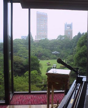 ただいま~~~よかったです~。やっぱりサロンコンサートはいいですね~とってもゆったりとした気分で、大いに笑って、楽しんで参りました。あちらに見えますのが~大隈講堂でございます。眼下には緑豊かな大隈庭園が広がっております。雨に洗われた緑はとても美しく、それをバックに楽曲を披露してくださいました。秦さん、槍と鉄砲がいっぺんに降ってきたようなたいへんなことが重なったそうでHPの新♪聞日記も更新されていなかったのでとても心配しましたが、秦さんの頭は速度を増して、クルクルクルクルと回転しピアノもお歌も,もちろんお話も絶好調で、あっというまに楽しい午後が終わりました。コンサートは今日のがいままでの中で一番よかった!・・・と毎回毎回思ってしまうのです。ほんと、よかった・・リーガロイヤルには秦さんがよく似合う。本邦初公開で「リーガロイヤルの歌」も披露してくれました。今日の秦さんのセレクトは 雨にまつわる楽曲の演奏からはじまり「即興曲」、「九品仏」・・・、「じゃんけんで勝った方の即興曲」、「ランチABCの歌(?)」「ままんままんぼ、麻婆豆腐のうた」「エリザベス(ワンちゃん)のお歌」新♪聞日記の中から、「がんばれ」、「1~10の歌」もちろん、いつもの「ロシアよりもったいないを込めて」「こわいこわい」「あなたへ」「あなたどちらさま?」「レジ待ちの列」「今日にありがとう」 でした。(題名ちょっと間違ってるのもあるかもしれません。ごめんなさい)続いて、7月1日(日)埼玉県美里市にて「遺跡の森出土コンサート」があります。13:30開場 14:00開演@埼玉県美里町遺跡の森館料金:前売り2500円 当日3000円秦万里子 中島奏(ゲスト)濱中祐司埼玉県美里町にあるとても素敵な大きなコンサートホール中島奏、濱中祐司が参加し、本格的なステージコンサート案内のページ:http://www.town.saitama-misato.lg.jp/event/morikan.htm◆お申し込み美里町遺跡の森館:0495-76-0204ここもね、また行きたいんですが、ちょっと遠くて・・・誰か私を連れてって!お近くのかたはぜひどうぞ。そして7月7日(土) 秦 万里子コンサート@NHK文化センター青山教室 7月7日(土) 16:00時開演18:00時閉演@NHK文化センター青山教室受講料:会員3150円 一般3570円主婦の日常に光を当てて・・・~秦万里子スペシャルライブ~◆お申し込みNHK文化センター:03-3475-1151 カルチャーセンターだけに秦さんと一緒に歌うんだそうです、今日聞いてびっくりでも楽しそう!楽しみです♪まだ大丈夫そうですよ~、是非ご一緒いたしましょ。7月、8月は佐賀、和歌山でもあるそうです。ぜひ、どこかで一度、秦さんのほんとうに楽しいライブ、聞いていただけると嬉しいです♪さ~、元気を頂いてまいりましたので、またがんばって家事に励み、次のコンサートという人参に向かってレッツゴ~♪