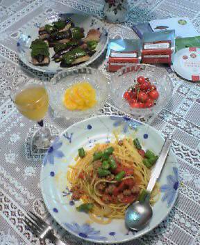 昨日の晩御飯カレーの三枚肉が残っていたので、塩と胡椒で焼き付けておナスの間にはさんでみました。わたしは一個だけにしときました。 食後のお紅茶が楽しみで~・・・いまさらですがレシピアのダージリンファーストフラッシュ2007プレミアムそして、お米きらしたので、パスタです。ひき肉でもステーキのように焼いてください、と何かで読みましたのでじっくりと焼きますと、こんな塊りになってしまいますがあえてほぐしません。一塊ごとにジューシーでステーキのよう(ホントホント)で、さっき新潟からお米届きました。生き物共生農業を進める会(0120-181502)のお米です。このお米、生き物共生米というんだそです。虫食いは価値が低くなるということで農薬を使う事になるそうですが、むしろ、虫を殺さないことを「価値」として積極的に評価することにより最終的に安全安心を求める消費者の利益にもかなうのではないかという提案の元に作られているお米だそうです。虫食い米は機械で簡単に除去できるんだそうで我々が頂くのは虫食い米ではありません。母のところで食べて美味しかったので取寄せてみることにしました。5K×2 で4200円送料740円。昨日はファビアンのお友達のベッキーちゃんが夕方ちょこっと来てくれました。ミニチュアシュナウザーのベッキーちゃんはアンちゃんのママ。いま具合がよくないのです。一日ごとに容態が変わり、飼主さんは心痛めています。陽気なおまぬけファビアンがアンのほうへ向かって行くと、ベッキーママは立ちはだかってアンを守るように威嚇していたのが、ついこの間のこと。昨日はあどけない、お顔を抱っこされたままで、見せにきてくれました。ファビアンも昨年12月、3歳になりました。いまもわたしの腰を温めつつ居眠りしてる、この愛くるしい息子は子供のような表情のまま、もう大人になんですよね。。。ベッキーちゃんの回復を祈らずにはいられません。どうぞお大事に。(昨年12月3歳のお誕生日の記念撮影)それともうひとつ、お友達がパンを焼いて届けてくれました。買ったものとどうしてこうも違うのか~、大好きな天然酵母のパンでしたが私の体調に優しく寄り添ってくださる優しい気持ちの味がしました。今日はとうとう雨。国会中継で参議院厚生労働委員会質疑をみていたけど、頭がくらくらしてきて、切りました。しかし、テレビカメラが入っているのに良く寝てますね~みなさん。いろんなところでいろんな方が熟睡なさってました。連日徹夜が続いているのでしょうか・・・予備校で起きてるために、授業中は寝ていた息子を思い出しました。でも息子は多少はアングル工夫してたようです。