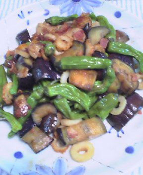 この頃、いつも冷蔵庫にあるお野菜ピーマン、ナス!このマイブームの一皿は ベーコンとナスあるいはピーマンあるいは両方を炒め最後にお醤油とみりんで炒り煮にしてできあがりというもの♪昨夜はししとうとおナスで♪これ今我家で好評で、いくら作っても余らない。毎日作っても文句がでないお料理です。昨夜は、これに枝豆、とうもろこし、ししゃも、緑豆春雨のゴマドレサラダ夏はさささっとできるお献立がいいですね~。昨日は柄にもなく、愚痴モード、失礼いたしました。おかげさまで?、イチローも快挙をとげわたしも根性が沸きあがってまいりましたので、今日も予定どおり、お友達と会いに出かけて参ります。この前向きさ、秦さんみたい・・・^^;秦万里子さんの新♪聞日記 こちらをクリックして聴きに参りましょう♪毎日4曲無料配信中♪では・・・今日は無理せず、お座りしておしゃべりに徹してきます!いってまいりま~~~す。