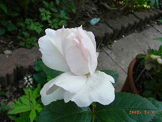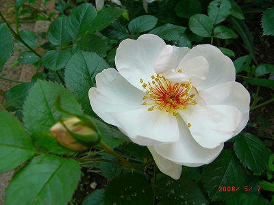 Mme.Hardyマダム・アルディ2008_0517_182128AA posted by (C)ヨセフィーヌ2008_0519_130818AA posted by (C)ヨセフィーヌフランス語ではHは発音いたしません。ナポレオンの御妃、ジョセフィーヌのバラの園、マルメゾンのアルディという、庭師さんが1832年に作出し、奥様に捧げたバラだとか。中心にあるグリーンのボタンアイがなんとも愛らしいつややかな純白の美しいオールドローズ。ダマスクローズに分類され、ダマスクとは古くから香料に使われたいたバラなだけに、これも、すばらしい香りです。枝はしなやかで、やや横張り。去年新苗で購入し、(一季咲きだから)お花をみたのは、今年初めて。ヨセフィーヌのマンマルメゾンにも、アルディならぬナイディという庭師がおります。お金も力も「ナイナイ」♪の「ナイディ」さん♪今日はナイディさんと、マダムナイディの「27回目の結婚記念日」でした。マダムナイディは、昨日からお友達とおでかけ。なにやら、嬉しそうに お昼に朝帰り?奥さん元気で留守がいい!?バラの季節のこの高温、急ピッチで開花が進んでるはず。午後は慌てて京成バラ園をのぞいてきました。ぼ~っとしてて カメラ忘れましたが満開!最高の見頃でした。我慢していてくれた空模様、とうとう夕方に崩れましたが念願の「バロン・ジロ‐・ドゥ・ラン」の新苗を今日の記念といたしました。ナイディさんもバラも 私をあてにせず、がんばれ~f^_^;2008_0516_115753AA posted by (C)ヨセフィーヌ国際バラとガーデニングショーのポーラボーニッシュの花束 その2