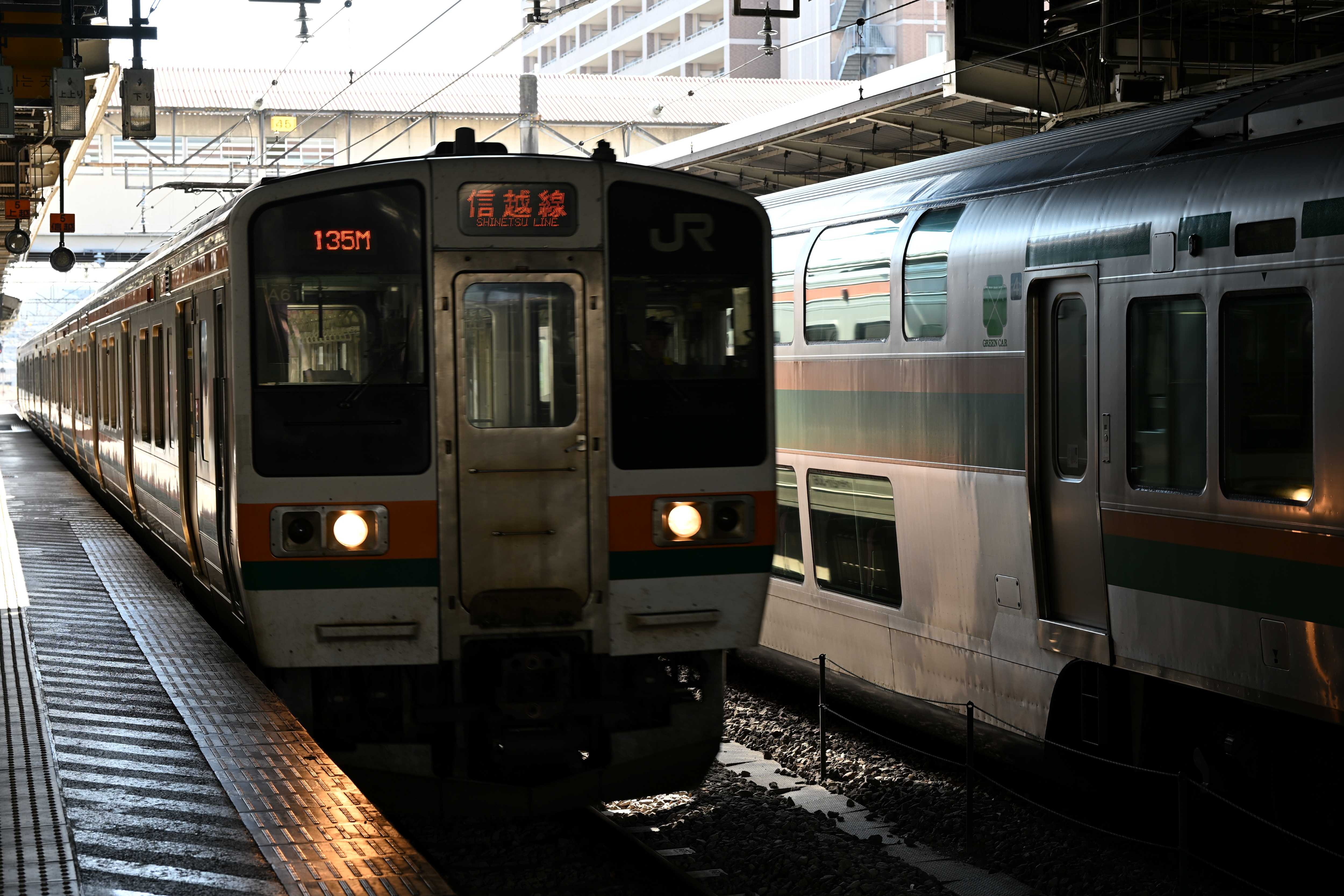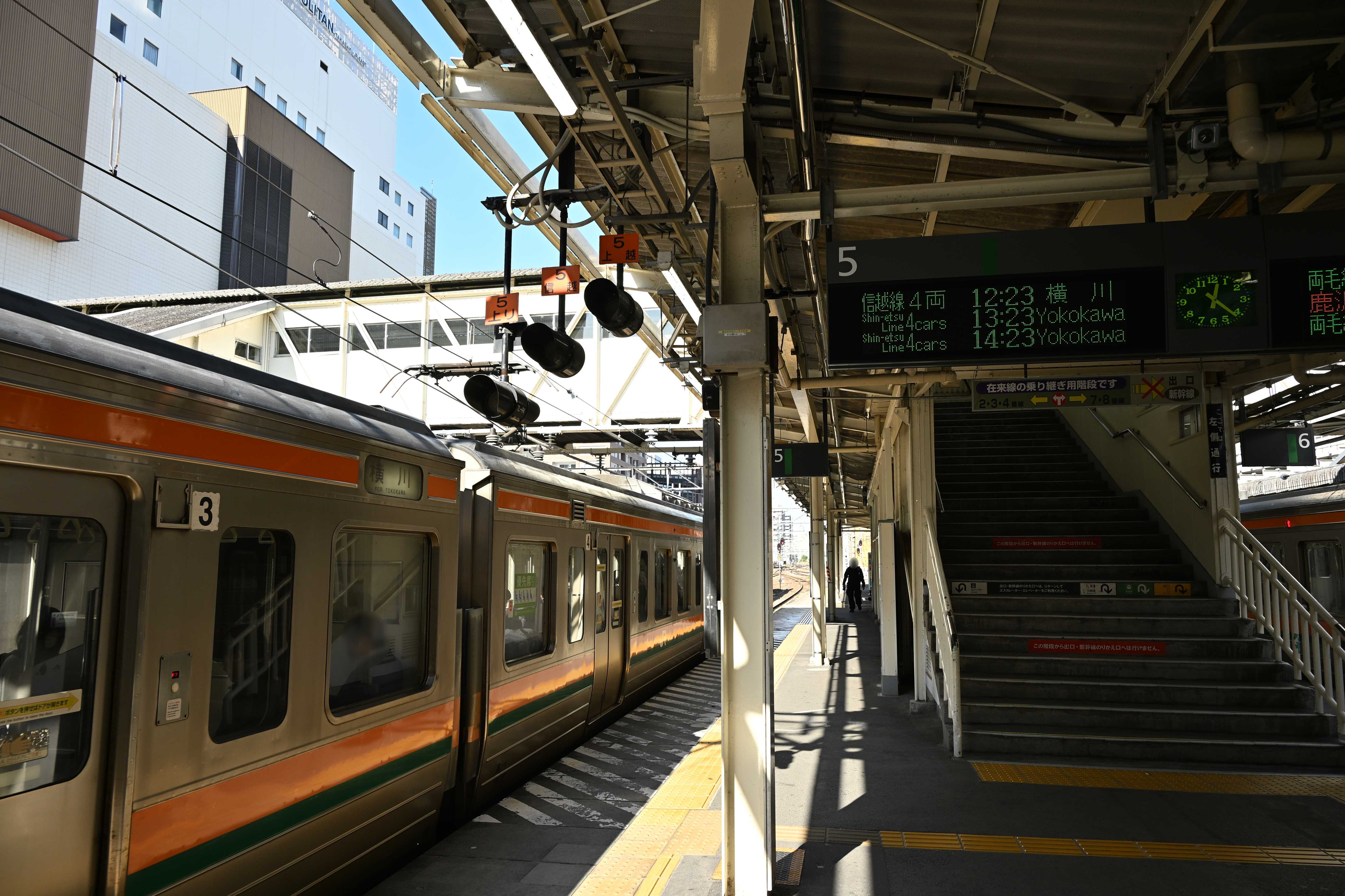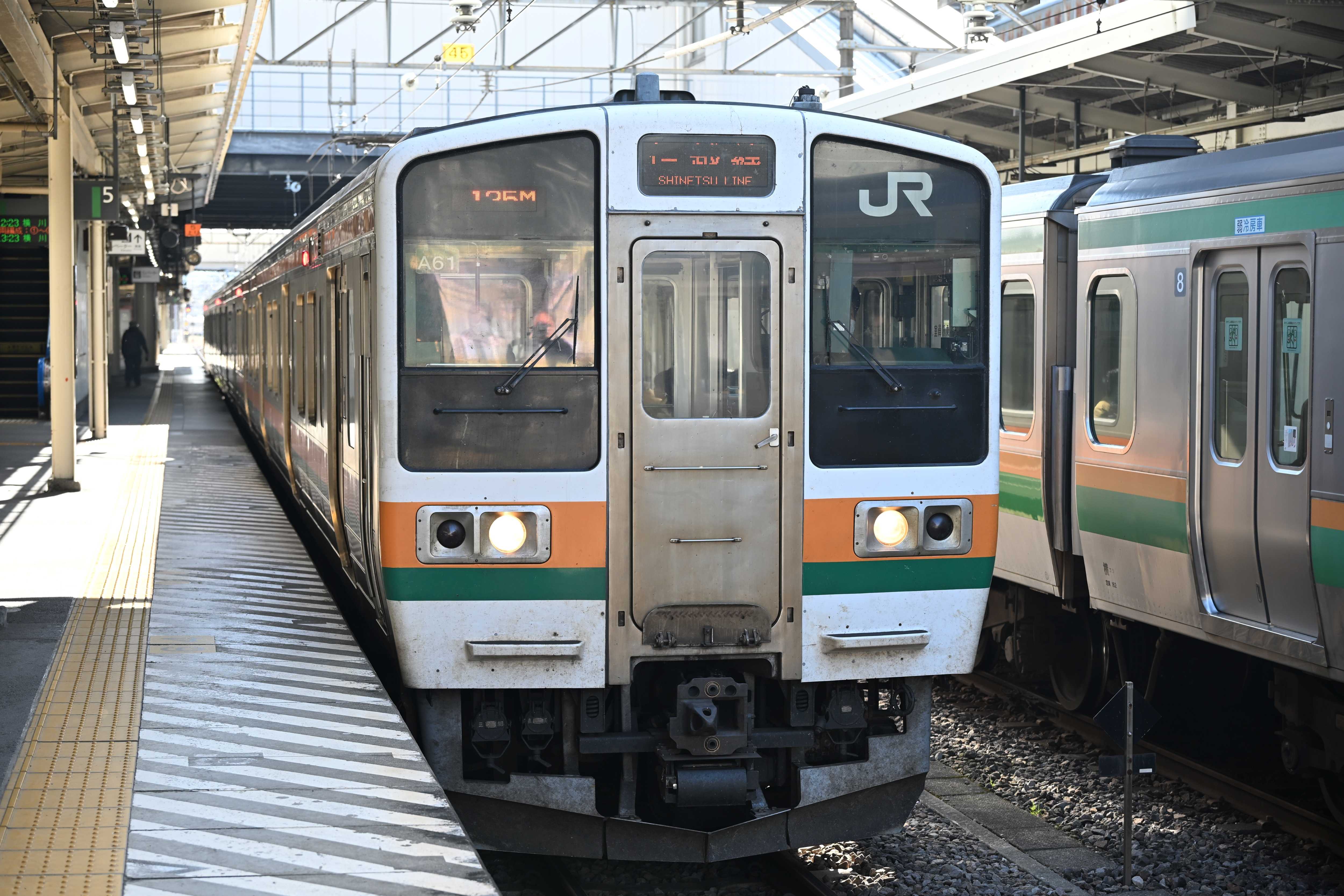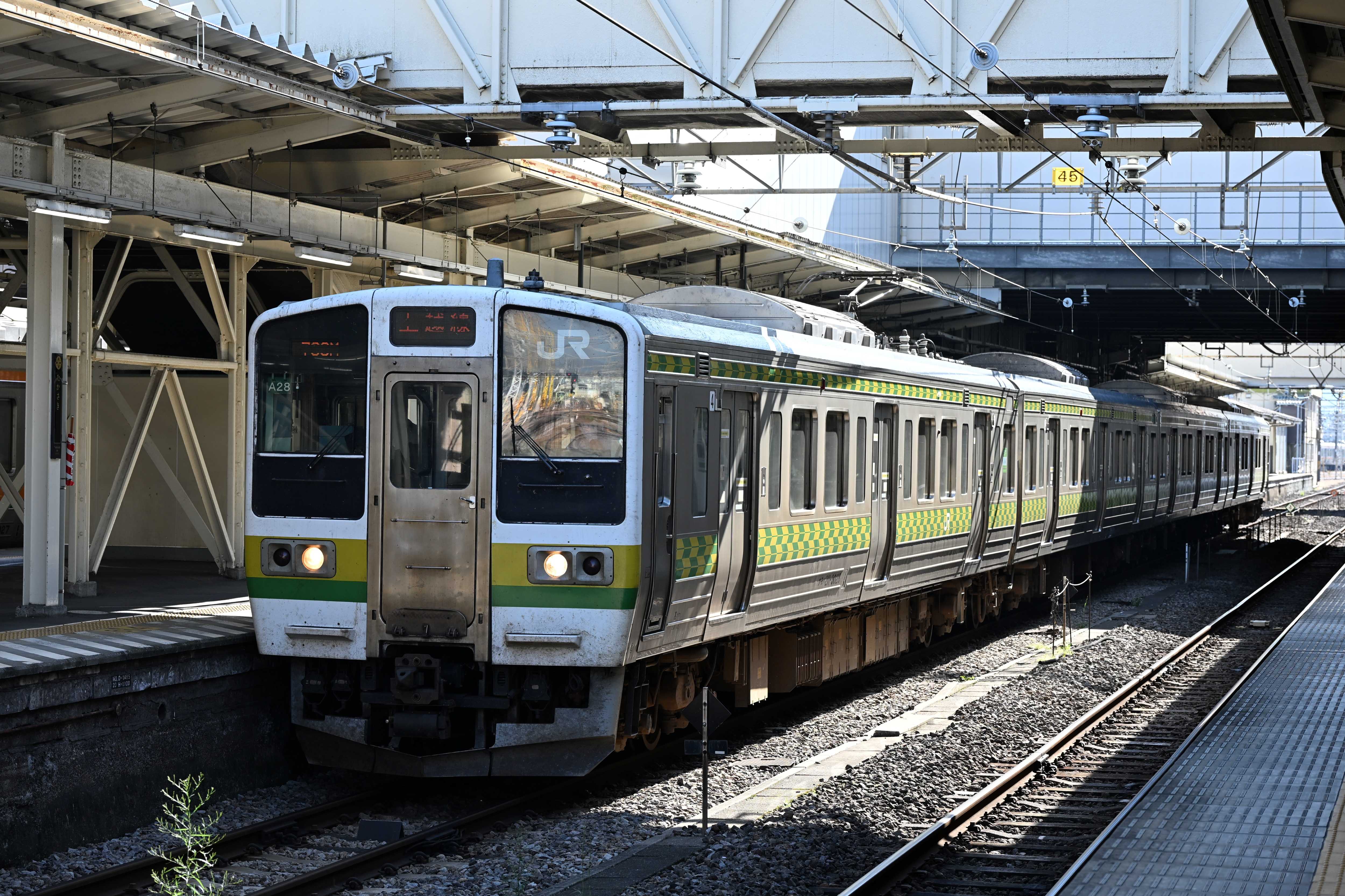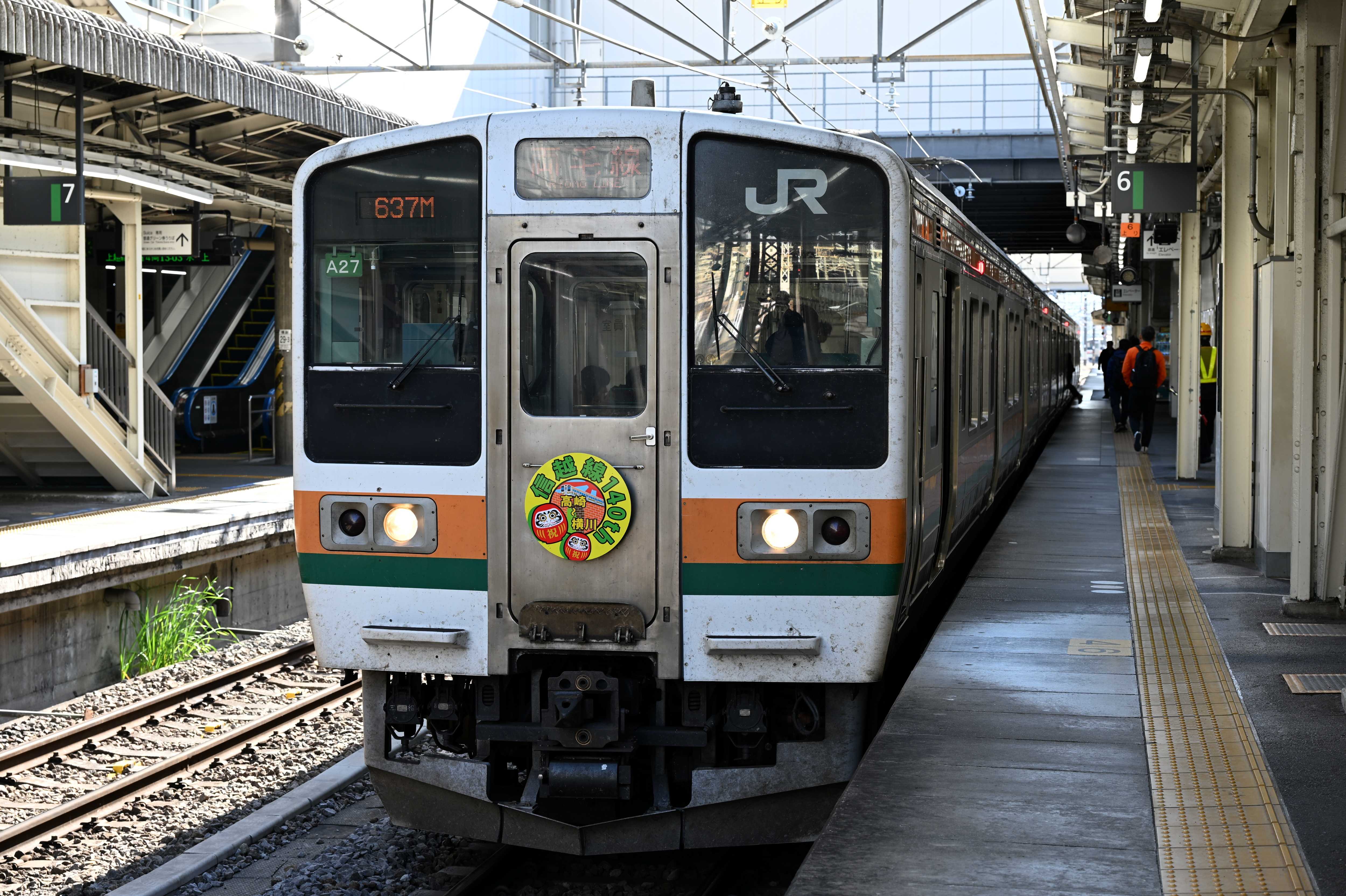 高崎線に乗車し高崎駅に行った。信越線開業140周年記念ヘッドマーク。駅名標。改札内の駅弁屋が閉まっていた。「矢絣(やがすり)」柄のラインの車両。八高線キハ110系。来年にはハイブリッド型のHB-E220系が投入される。 新前橋方面。横川行きがやって来た。ホームの様子。211系車両。