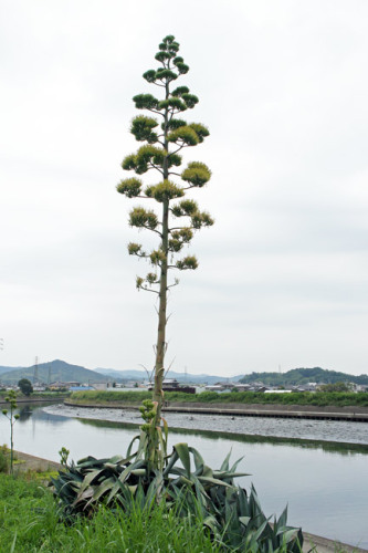 アオノリュウゼツランの花(和歌山県 和歌山市杭ノ瀬435)8/4日に、「竜舌蘭の花」を観に出かけました。 数十年に一度咲くと云う「アオノリュウゼツラン」が「白浜町の京都大学白浜水族館の敷地内で咲いている」と新聞で読んでいたのですが、行こうかなと思っていたところネット検索すると和歌山市内の和田川沿いにあると記載されていたので場所を教えて戴き、行って参りました。 -- -- 和田川の堤防で「とても背が高く」伸びているのにビックリしました。本当に見事な大きさの蕾と花でした。30-50年で開花すると聞き、こんなに先までは、生きていないと思い、見てきました。 ”おまけの画像 ” 大きな蕾でした。蕾から花☆ 愛犬ぱぱさんのオススメ ☆喉ごし爽やかミネラルウォーター日田天領水甘くて美味しいトマトジュースオオカミの桃