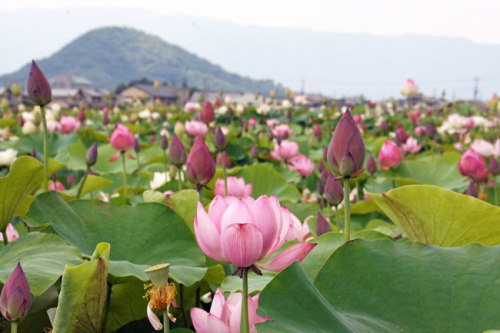 蓮の花(藤原京跡)(奈良県 橿原市高殿町)「よりりんさん」の情報で、藤原京跡の蓮の花を7/25日に、観に行って参りました。畝傍山を背景に多くの蓮の花が咲いていました。 -- -- とても暑い日で熱中症に成るかなと思っていると突然、暗くなり冷たい風が吹いてきて、雨でも降りそうに感じて急いで撮影していると、日が照り初め何とか助かりました。丁度、お昼になりましたので、かしわら万葉ホール5Fにある、「ほうらんや」でお昼の食事を、戴きました。 ”おまけの画像 ” 可愛いバッタの子供がいました。☆ 愛犬ぱぱさんのオススメ ☆喉ごし爽やかミネラルウォーター日田天領水甘くて美味しいトマトジュースオオカミの桃