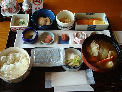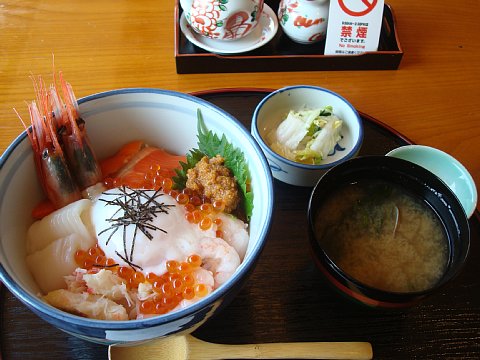今回の宿泊は,朝食付きにしました。朝食は3種類から選べます。この日選んだのは「海鮮丼」でした。朝から海鮮丼が食べられるなんてしあわせ~。ひとつ残念だったのは雲丹だと思ったのは山わさびでした。(間違わないようにと配膳の際,教えてもらいました。)