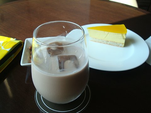 2日目のカクテルアワーの前にチョコレートドリンク(冷)とケーキ。カクテルアワー1杯目はビール。2杯目は,またソルティドッグを作ってもらいました。