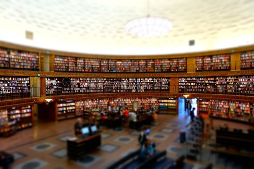 ミニチュアモードで撮ってみました。このページの写真は全部クリックで大きな画像が見られます。ぜひクリックしてみてください。この空間の素敵さが少しでも伝わるといいな。本好きは憧れますよね。360°全部が書棚の部屋。それが図書館で大きな空間であるのですから見てみたい行ってみたいと思ったのです。本当に素敵な空間です。実際に自分の部屋をこうすることはできないし現在の私の部屋は本を手放していく,減らしていくことをがんばっている所。なんとか1つの本棚に納めたいけれど部屋にはまだ本があふれています。雑誌類も多いんだよなあ~。図書館ならこんな理想的な空間が可能。ああ~来てよかった。近くにこんな図書館があったらいいのにな~。【楽天ブックスならいつでも送料無料】ELLE DECOR (エル・デコ) 2015年 08月号 [雑誌]価格:1,620円(税込、送料込)