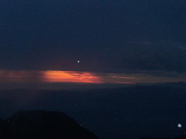 11月26日夜明け前。私、夜明け前が好きって最近気付いたワン皆さん御来光をワクワクしながら待ってます!手前は有明山。ピンクからオレンジに空が染まっていく。ところが・・・ガスってきた~~!!夏の西穂の御来光の時に似てるぞ!燕岳も見えたり隠れたり。というわけで残念な御来光でしたが・・・素敵な朝を迎えられて感謝・感謝の気持ち良い朝です。この写真は下り始めた時の安曇野の街に日が射してる写真です。どんなに私達が暮らしてる街が曇っていても、雨でも遠い頭の上ではお天道様が見守ってくれてるんだなって感じる瞬間です。 山に登るといっつも思うのが・・・私達はこの下界で言い争ったり、ちっぽけな事で悩んでる。止めよう~~!!もっともっと広い心で暮らしていこう!もっともっと大らかな気持ちで生きていこう! この1週間、体調いまいちで山にも行かずにいたら・・・マイナス思考になっていた・・・私の元気の源はやっぱり山なんです!そうだそうだ!おおお~~~~山行きたい病にかかってる時の方が健康っつう事ですね! 山に行きたくなくなったら要注意!!! さてと!連休に向けて明日からは早起きしてYOGAで体力挽回しなくっちゃ!