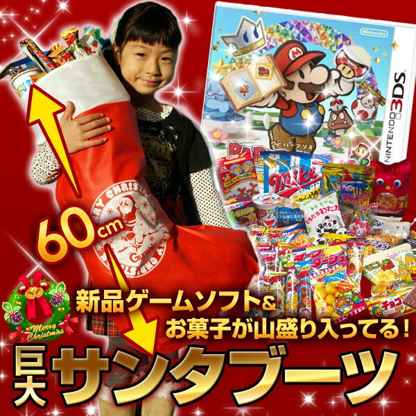 3DSソフトが3本入ってお菓子も入ってるのに二千円しなくて送料無料・・・ 【巨大60cmサンタブーツ】新作ニンテンドー3DSソフト入り!クリスマスブーツお菓子山盛り35個以上の詰め合わせ&ゲームソフト3本セットゲーム問屋×お菓子問屋コラボ[数量限定品]パズドラZ/ポケットモンスターX/マリオ/ワンピース/ポケモンY選べる【送料無料】