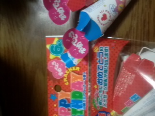 手元をよく見ると、クラッカーにくっついたまま「おめでとう♪」の文字。