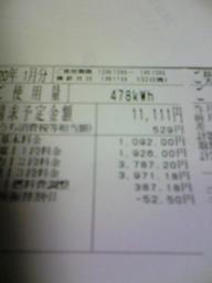 今月の請求書。 12月は家のクリスマスイルミネーションをやっていたので金額が高くなっているがこんなゾロ目の金額は初めて。今年になって、びっくりしたことがもうひとつ。1日に息子の洋服の福袋を買いに某ショップへ。そこは購入金額5000円ごとに1回くじがひけるお年玉企画をやっていたのだが2回くじをひいたら、な、なんと1枚が1等(10000円の商品券!)・・・そしてもう1枚がな、なんと2等(5000円の商品券!)10000円分の商品を買って、15000円もらってしまいました・・・私たちよりもびっくりしていたのが店員さんたち。こんなこと初めてだそうです。私たちが帰る時にヒソヒソ話で「1等と2等だってよ・・・」と言っていた。そして、今回のゾロ目の請求書。 これは関係ないかっでも今年は何かが違うぞぉ