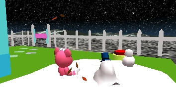雪だるま原っぱの上で、白いバレリーナ衣装のモモと