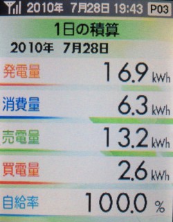 7月の平均発電量:12.1kwh/1日  (発電見込み:9.6kwh)