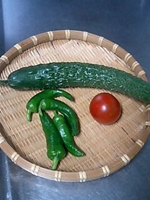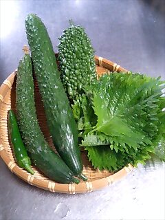 今日は忙しかった・・・まずは、朝の散歩。途中の農家さんでシソを頂く。前に頂いた時美味しかったので、今日はちょっとオネダリしてみました(^^)我が家の収穫と合わせて。。。ゴーヤ初収穫です!あらら?シソが少なく見えるけど、大量に頂きました(^^)