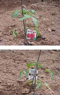 引っ越して、小さいながらも庭が持てたのでさっそく家庭菜園ですよ(笑)トマト、2種類きゅうり、2種類ゴーヤ(緑のカーテンになる予定)と紫蘇さらに、今日旦那が「小玉スイカ」を植えてました。はてさて、、、食べられるまで行き着くのでしょうか?(^^;)