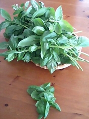 バジルを収穫部屋中いいにお~い(^▽^)半分はジェノベーゼソースを作ります半分はレンジで乾燥させて、冷凍庫で保存