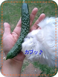 旦那が植えておきながら全然手入れをしない為伸び放題で庭の半分を多い尽くす勢いの小玉スイカを強制排除しそのスペースに石灰を撒き、堆肥を入れの2週間。。。昨日、人参の種をまきました向陽2号。人参は発芽するまでが勝負との事!乾燥させないように不織布を被せると良いのですが「よしず」をベタ掛けしても良いと聞き、裏庭で腐りかけていた去年のよしずが復活ハテさて、無事発芽出来るでしょうか・・・また、土もまだイマイチなので、曲がり人参、二股人参が出来ちゃうかな?でも家庭菜園一年目、間違ってても良いからトライ!トライ!今日の収穫この他にゴーヤー1本、きゅうり1本…ゴミ捨てに通りかかった並びの家の高校生におすそ分けしました。直後、お仕事に出かけるママが車の窓越しに「ありがと~~~」って(笑)小学校の司書のお仕事をしている賢いママさん、読み聞かせの達人ですさてさて、、今日のシュナちゃんは?う~ん、暑くてダルいのは解るけど、、今日はフロントラインしましょうね公園仲間のももちゃんがエリザベスカラーしてたもんね…フロントラインをちょっと遅らせたら、ダニにやられて掻き壊して病院へ行ったそうです。5000円の出費でパパさん泣いてました(^^;)私も泣く前に、、頑張ってねシュナ!フロントラインやると半日具合悪そうになります。。。可哀相だけれどダニも怖いしね