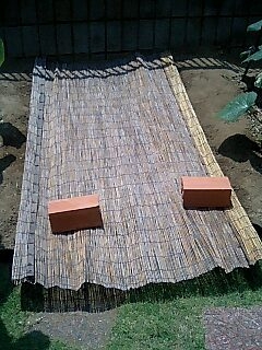 昨日はエアコンの外気温計が27度まで上がってたのに今、午後2時の外気温は8度だよ寒いけど、午前中は銀行やら市役所やらへ行ってきました。こども手当ての手続きしてきましたはたしていつまで支給して頂けるのか微妙だけどね(--;)夏の日差し除けに緑のカーテン。出窓の所にゴーヤを植えようとコレ↓を買いました。菜園支柱FACTORY朝顔やゴーヤで緑のカーテン!設置に便利な支柱とネットのセット緑のカーテン伸縮立掛けタイプ(ワイド1800)一緒にキュウリとトマトでも植えようかと支柱セットも購入。先週末に旦那と息子と(娘は手伝わず、Pcで遊んでました)設置して、石灰と肥料を撒きました。後は苗を買ってきて植えるだけです。今週は雨が続くと聞いていたので、今週末に植える予定でしたがまだしばらく寒い日が続くそうで…気象庁から「低温・霜に注意」との御達しが(><)うちは苗を植えるのを遅らせればいいだけだけど、農家の方はお気の毒…野菜高騰に拍車がかかるのは間違い無いね…早く暖かくなって、家庭菜園を楽しみたいなぁ~家庭菜園の様子もアップしますね!庭に出るときはシュナも一緒です。草むしりをしてる私の様子を見て、草を食べる事に目覚めた様子シュナと一緒だと草むしりも楽しいです♪シュナのお陰で楽しい毎日を送っています(^▽^)