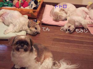 みんな後ろ向きですみませんヾ(^-^;) トトロ&てん&もみじはよく一緒にいるけど、この親子写真は珍しいよ!女家族の中、やっぱり弱い立場のトトロ父さん・・・前にいかれないのよねー(*´Д`)=з