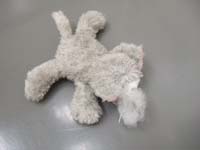 ↑ほんの何日か前に買ってあげたおもちゃが、無残な状態で放置されていました。ほんとにうちのわんこはおもちゃの遊び方が激しくて困ってしまいます(*´Д`)=зこのおもちゃ中に「にゃ~にゃ~」と鳴くのが入っていて、それはまだ使えるから‘手作りおもちゃを作ろう!’と張り切っちゃいました♪子供用の手袋の中に入れる予定でしたが、100均で売ってなかったので予定変更でこちらになりました↓ 子供用のくつしたですまたまた簡単な手作りですが、うちなんかすぐに壊しちゃうから、こんなんで十分です。 =作り方=1:子供用の手袋(今回はくつした)に手芸用わたを適当に詰め込む2:名前不明のピーピーなるもの(大きい手芸屋で入手できますor壊れたおもちゃからリサイクル)を 真ん中に入れて口を塞いで終了 ~以上~毎度毎度、簡単なものしか紹介しなくてすみません(;^_^A アセアセ・・・きっとみなさんはもっと上手に作ると思いますが、お裁縫が苦手な私でも出来ちゃうところがこのおもちゃのいいところ♪さておもちゃの評判は・・・・ もみちゃん必死(^。^)もともと紅葉のお気に入りだったから、最初にもみちゃんにあげました。「にゃ~にゃ~」とまたうるさくなりました(*^-^)b