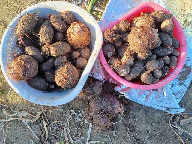 サトイモを少しずつ掘っていますが、小さくて数もありません。第一弾の収穫をしました。残りはどれだけあるかわかりませんが、種芋として置いておきます。第二弾は遅く植えたのでまだ葉がありますからもう少し置いておきます。今年のできは本当に最悪でした。いつもに比べると芋から出ている根がほとんどなかったような気がします。もしかしてネコブセンチュウの影響がサトイモにもと思い調べてみると影響を受けるようです。芋に縦に亀裂が入っている物が見られているので、ネグサレセンチュウの仕業で根が腐っているのではないかと思われます。植える前に石灰窒素を撒いていましたが、端だったので量が少なかったのかもしれません。ランキングに参加しています。クリックよろしくお願いします。にほんブログ村