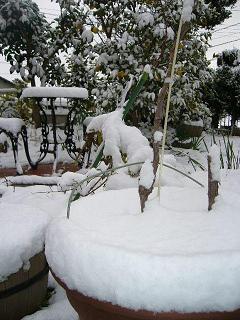 今朝雨戸を開けると 私の視界に入ってくる庭の景色が真っ白 前のお天気情報のときはあまり雪が降らなかったので~ 今回は油断してました 庭のシクラメンやパンジーの植木鉢には 雪が8センチの高さに積もり あわてて手で雪を払い(手が冷たい~) ビニールで植木鉢を覆いました 花が痛んでいないかチョッと心配ですよ・・・・