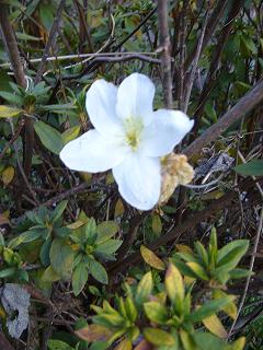 暖かな日に青い屋根の周りを散歩すると 白い花が咲いています 昨年より咲き続けている皐月の花 寒さもの中、 そして雪の中 枯れることなく咲く白い花 いつもでしたら早くに枯れているはずなのに この樹だけは花を付けています どうなっているんでしょうか 薄い花びらで 少しの寒さでも枯れそうなのに 先日の雪にも耐えてまだ白い花を付けています