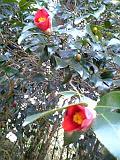 寒い日の 散歩の途中にある藪椿 深緑と茶のキャンパスの中で 紅一点 昔から見られる懐かしい椿