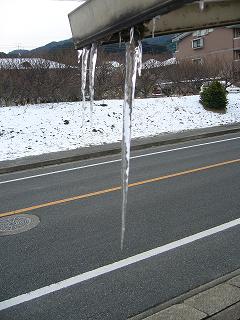 昨夜、娘が仕事帰りに つららを見つけたよと話していましたので 寒い朝につららを見に行くと キラキラと光る長さ30センチもあろうかと 思われるつららでした