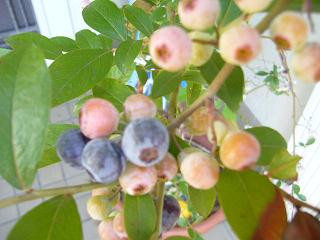博多の町では、山笠の間は凄い雨が降り 山笠が終わる待っていたかのような夏日です 青い屋根の前の川もいつもは静かな川なのに 大雨が降ると怒ったように濁流が 護岸を越えて土が流されました 今回はまだ一部だけで昨年より軽症でしたが、 これからも雨が多く、そして八月末には台風と続きます 安心して青い屋根が続けられますように そんななか庭には、ブルーベリーの実がわんさか付いています 毎日、収穫というか、ちぎってはその場でいただきます そして、何処に植えていいかわからず、 取り合えず植木鉢に植えて置いた 巨峰の木が蔓を伸ばし庭の樹木を杖代わりに そしてなんとマスカットのような実を付けています 嬉しいですね~ 虫や・鳥からの保護の為に袋をかけました