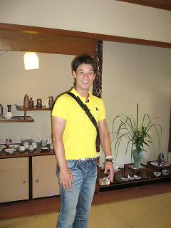 真夏日にFBSのめんたいワイドが青い屋根くるとのこと・・・ 最初はお盆前なのでどうしようかなぁ~・・・・ しかし、いいチャンスなので撮影をお願いしました。 のんびりオープンしてるギャラリーなので サー お掃除が大変・・・ タンバリンを練習していた長女が 長いローカを、トンチンカンチントンチンカンチン気にしない~と 一休さんの詩を歌いながら 雑巾かけを手伝ってくれました。 収録の日は・・・ディレクターさん そして、よくテレビで見かける 高村公平さんがリポーターで来てくれました 私も身長は高いほうなんですけれど 公平さんはもっと背が高く笑顔の素敵な、マッチョな 好青年でした サインをお願いしたら、快く笑顔でサインをしてくださいました。 暑い日にも関わらず、公平クン、収録スタッフさん 誠にありがとうございました。