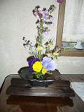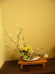 我が家の和室に生け花が活けられました 初めての娘の生け花 私も随分前は池坊を習っていましたが 最近はもっぱら私流です 水盤も家においていなかったので せんべいの蓋に活けています 明日には水盤を用意しますが 花とのバランスを見て楕円形の水盤がいいのかな~