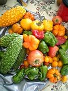 緑・オレンジのピーマン・キューり・大根・ゴーヤ そして しょうが・にんにく・塩・りんご酢・砂糖と 少しの減塩しょうゆでピクルスの爽やか保存食を作りました ゴーヤは縦に半分に切り種と白い部分を取り 糠床に一晩漬けてシャキシャキ ゴーヤの漬物です