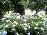 青い屋根の庭に 挿し木からの紫陽花 一年目は葉だけ 二年目は梅雨の時期を過ぎ 涼しくなった頃に薄い水色の小さな花を一輪付けました そして今年 こんなに大きくなり沢山の青い紫陽花が沢山咲きましたよ