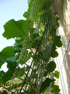 主人がベランダでグリーンカーテンと言って 胡瓜.トマトを育てていました 私は庭にキューりを植えました すると大きな葉と小さな黄色い花がいっぱい咲き 収穫は4本 まだまだ収穫できそう ツルが今では人の高さよりも高~く伸びて グリーンカーテンが出来ました これで部屋が少し涼しくなるかな・・・ 主人が庭を見ては胡瓜の収穫と言いますよ 庭でこんなにしっかりと収穫できると嬉しいですね キューリの糠ずけを毎日 娘はポリポリと食べてくれます