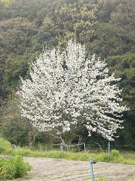 柔らかな若葉の山に映える 大きな梨の樹に 白い花をたくさん付けています。 随分前までは硬~い実を付けていましたが・・・ 今は一個も見ません 大きな樹にたくさん実を付けてくれるとうれしいな~