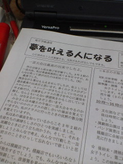 一日遅れの日記ですが、大阪の佐藤先生のコメントを読んで本当に嬉しく思いました。金曜日でクラスの毎日学級通信は一休みですが、こちらの方はなんとか毎日更新を頑張ろうと思っています。今日の土曜日は午前中は学年通信の印刷と、通知票と一緒に入れるあれこれを袋詰め。そして午後は数学の講習を2時間。あ~疲れたと思ったものの高生研全国大会のしおりを作成する仕事が山積みルーキーズの最終回を見ながらなんとか大会のしおりを完成の方向に近づけました。大会まであと4日全国のすばらしい仲間と出会えることを楽しみに頑張ります。