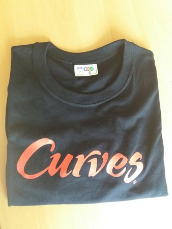 うちのカーブスは100回通うと、ロゴ入りTシャツをプレゼントしてくれる。今日が100回目だった。もらったのは、Sサイズ!!!(@@)はんら、入るのか?!?入りました。おばちゃんサイズらしい。^^うちのカーブスは代表が男性から女性に変わったら、内部がすごくきれいになった。壁紙も張り替え、インテリアも変わった。やっぱり女性はイイネ!^^