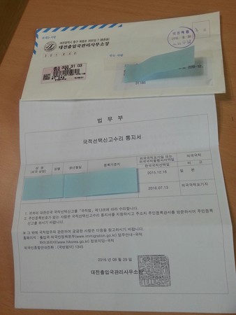二重国籍の子供の日本国籍離脱の手続きは、まず日本領事館で手続きをして、その後、韓国の出入国管理事務所で手続きをします。そして、1か月半経った今日、法務部で国籍選択の届け出を受理したという通知が届いた。これは受け取って内容を確認だけすればいいそう。もし外国人登録証を持っていたらそれは返還しなければならないし、住民登録番号を持っていなかったら申請しなければならないが、コーちゃんはどちらも該当しない。皆さん、今後、国籍の整理をする場合には、上の日記を参考にしてくださいね~!と言いたいとこだけど、法がコロコロ変わるので、皆さんのお子さんが国籍整理する頃には、恐らく、また法が変わると思いまーす!はんらが国際結婚した頃の法律では、なんと、韓国人と結婚した外国人(=私たち)はみんな、無条件に韓国国籍がもらえたのでした。だからはんらもコーちゃんみたいに、韓国に来た当初は二重国籍でした。その後、国籍整理をして、今は日本国籍だけにしてます。が、書類上は「元・韓国人」ということになっているので、はんらがもし、韓国籍を取りたかったら、「帰化」という形ではなくて、「私が昔持ってた韓国籍を返してね」という手続きになるんだそう。(^^;)