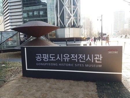 パスポートを受け取ってから、日本大使館領事部から徒歩10分ちょっとくらいのところにある「公平都市遺跡展示館」へ行った。入り口がわからず、ちょっと迷った。↑ ここは入り口じゃない!まぎらわしいっす!!ここが入り口~入るとすぐ、下がガラス張りになってて発掘された都市遺跡が足の下に見えるようになっている。が、くらくらするぅ~(@@)昔のソウル(漢陽)の地図。このあたりは景福宮や昌徳宮、昌慶宮、徳寿宮、慶熙宮のちょうど真ん中に位置していて、朝鮮時代には大きく栄えていたらしく路地にたくさんの商店が立ち並んでいたそうだ。ここに発掘された店跡などは、16~17世紀のものだという。1978年にここ一帯が都市開発され、1981年に地下3階、地上13階規模の「公平ビル」が建てられた。(写真、左)2014年にここ一帯が再開発されることになり、「公平ビル」は取り壊された。そしてその後、ビルの周りで過去の遺跡や遺物の発掘作業が始まった。(写真、右)この柱の上の線の部分が、今の地上。3メートルくらい掘り下げられたようだ。だから地上1階からエスカレーターで3メートルくらい下がったところに展示館はある。これは模型。かなり広い上に、入場は無料。よしくんはこういうのが好きで、長い時間をかけて、しっかり隅々まで見ていた。が、コーちゃんはこういうのは関心がないので、5分で見終わって、ベンチに座ってスマホで遊んでた。(^^)最近はどこに行ってもVRがありますね~昔の町並みを歩く、というようなものだったと思うんだけど、はんらもやってみましたが、壁にぶつかってばかりで全然前に進めず、頭がぐるぐる~回ってリタイア。爆。こういう屋根を作るとか、石を積んで石垣を作るというようなお子ちゃま向けの体験ブースもある。