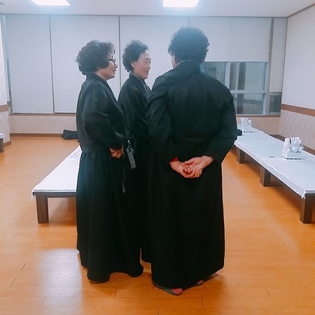 今回の姑の葬儀を振り返って、備忘録です。韓国で身内のお葬式を出したのは2回目。1回目は舅の時で、1999年6月だった。当時は、田舎ではまだ自宅でお葬式を出した時代で、田舎の家の庭にゴザを敷き、テントを張って、料理も全部、嫁たちが作り、村の人たちが手伝いに来てくれたけれど、料理、盛り付け、接待、皿洗い、全て自分たちでやらなければならなくて超が付くくらい大変だった。舅が亡くなって悲しいも悲しくないも何も考えられないくらい、ただただ忙しかった。今は、自宅でお葬式を出すところはほとんどなく、病院の中、あるいは隣に、葬式場があるのでそこで行なう。姑の葬儀も、10年近く入院していた養老病院の隣。先日書いたように、臨終の知らせが来た時に、牡蠣にあたってしまっていた末嫁(はんら)は、翌朝の高速鉄道でテグに駆けつけた。着いた時にはもう、入棺式も終わってしまってて、はんらは姑の死に目に会えなかったばかりか、お別れもできず・・・それで、何だかまだ実感が無いのかも。(涙)嫁なのに、牡蠣にあたって遅れたなんてすごく後ろめたいような気持ちだったんだけど、はんらがげっそりして見えたのでしょう。お義姉さんたちが駆け寄ってきて「アイゴ~!こんなにやつれてしまって!!こんなに痩せてしまった体で無理して来なくても良かったのに」などと言ってくれたので、ホッ。実際には全く痩せてなんかないんだけど、具合が悪かったのでやつれて見えたのでしょう。お義姉さんたち。この喪服みたいなのは葬儀場でレンタルしてくれる。レンタル料は多分、1着6万ウォン(6千円)。はんらも同じの着ました。男性陣も同じくレンタル。葬儀場でも仲良しさ~高校は、祖母が亡くなった場合は5日間まで公休がもらえる。よしくんは2日間だけ休んで3日目からは登校しました。ちょうど冬休み前のこんな時期で良かった。試験前なんかだったら大変だったかも。遺影の姑。こんな感じになっていて、弔問客は遺影の前で2回、クンジョルという土下座のようなお辞儀をする。そして喪主たちと簡単な挨拶をして、別室でご飯を食べる。食事は、ご飯辛いスープチヂミ茹で豚イカとキャベツの和え物キムチやたくあんお餅果物ナッツ類辛いスープやご飯はどっさりあって食べ放題。(もちろん、全部あとで金額は請求される)食べてサッサと帰る人もいれば、お酒を飲みながら長時間ゆっくりしていく人もいる。はんらもテグに住んでいた頃の懐かしい友人たちが数人来てくれて、思いがけず、楽しい時間となった。姑は95歳の大往生、成人した曾孫も何人もいるくらいだったので、そんなにしんみりした雰囲気ではなくみんな「長い人生、お疲れ様」みたいな感じだった。誰でも寿命はあるのだろうけれど、長生きして多くの子や孫、曾孫にまで恵まれた姑は、辛いことや悲しいこともたくさんあったと思うが、幸せなこともきっとたくさんあったんだろうと思いたい。さて、あんまり長生きしてしまって息子や婿たちがみんな定年退職してしまうと、この花輪があまり届かなくなってしまうので寂しくなってしまう。義兄夫婦はとっくの昔にリタイアしているので、義兄関係から来た花輪は同窓会1つと知人たちが送ってくれたの1つのみ。幸い、末っ子ノギちゃんが現役なので、ノギちゃんの会社関係などなどから5つ、同窓会から1つ、友人の集まりから1つとたくさんの花輪や花篭が届いて、義兄たちも喜んでいた。良かった。これもノギさんの会社から。韓国は最近はほとんど3日葬。はんらが行ったのが2日目。その日に一番たくさんの弔問客が来て、真夜中12時過ぎてもまだお客さんが来た。3日目の朝は、明け方3時に義兄に起こされた。いや、そんな早く起きる必要はなかったのに、義兄は喪主になってテンパってた模様。4時過ぎに遺影の前で最後の祭祀を行なって、更に場所を移動して、何やら祭祀のようなことをした。そして、遺体安置所から棺を出して、本家の長孫が遺影を持ち、その後ろを男性陣が棺を担いで、葬儀場を出発。棺をバスに乗せて、はんらたちもみんなバスに乗り込んで、テグの冥福公園という火葬場に行きました。火葬にかかる時間は1時間30~40分。韓国ではお骨拾いのようなことはせず、焼いたお骨は機械のようなものできれいな粉にされてお壷に入れられて渡される。それを持って、またまたバスに乗り込んで、今度は田舎の埋葬地に。上のほうに人影が見えるでしょうか。そのあたり。この日、韓国は氷点下10度まで気温が下がり、おまけに山なので風もびゅーびゅー吹いて寒かったのなんのって。ホッカイロ持ってましたが、ホッカイロが冷たいままだったので不良品だったのかと思ってたら、あとでバスに乗ったらホッカイロがすごく熱くなったので、寒過ぎて、外気に温度を奪われてホッカイロが温かくならなかったようです。あんまり寒いところに半日いたので、ノギさんもはんらもコーちゃんも、すっかり体調を崩してしまったのです。。。パワー