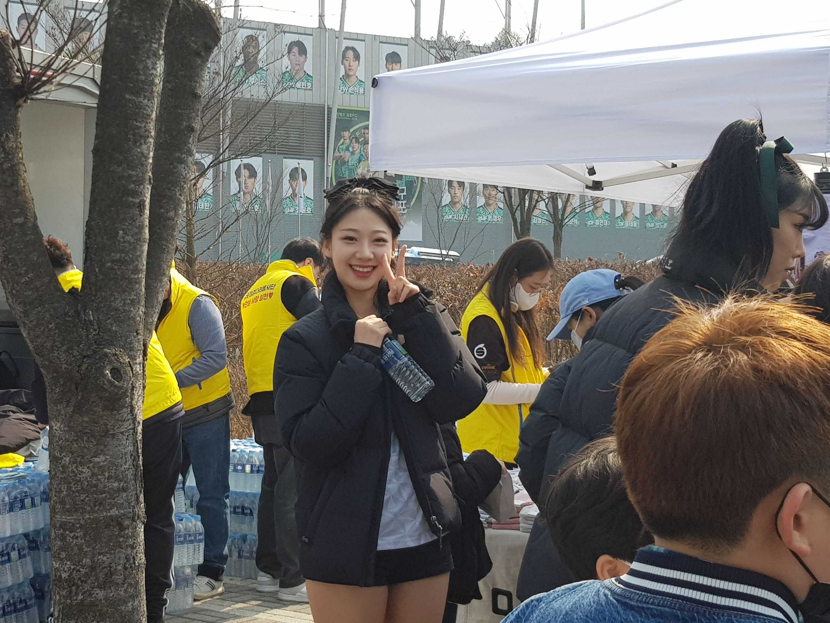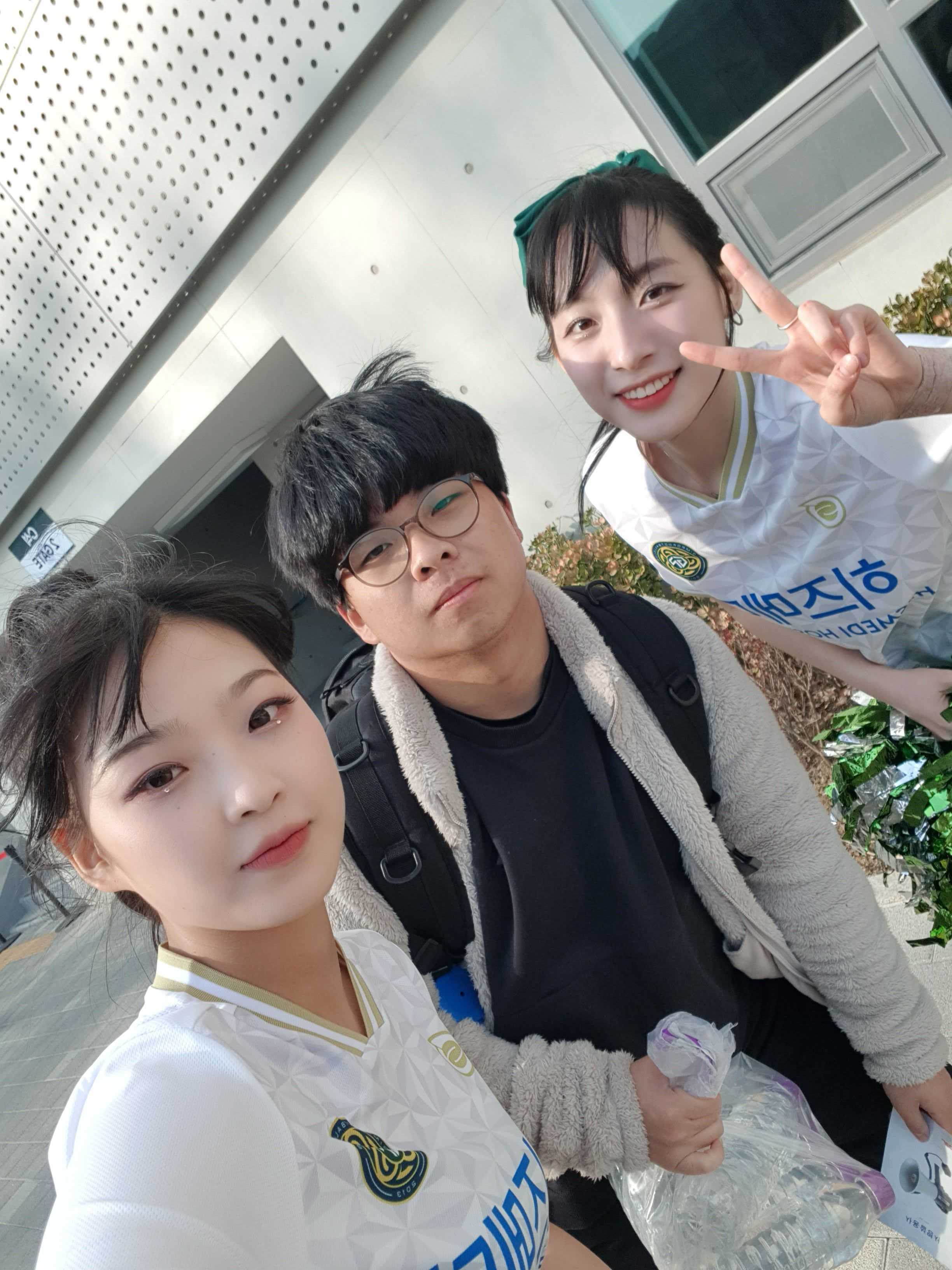 きれいな金浦のチアリーダーさんたちと一緒に撮った楽しそうな写真が送られてきた。