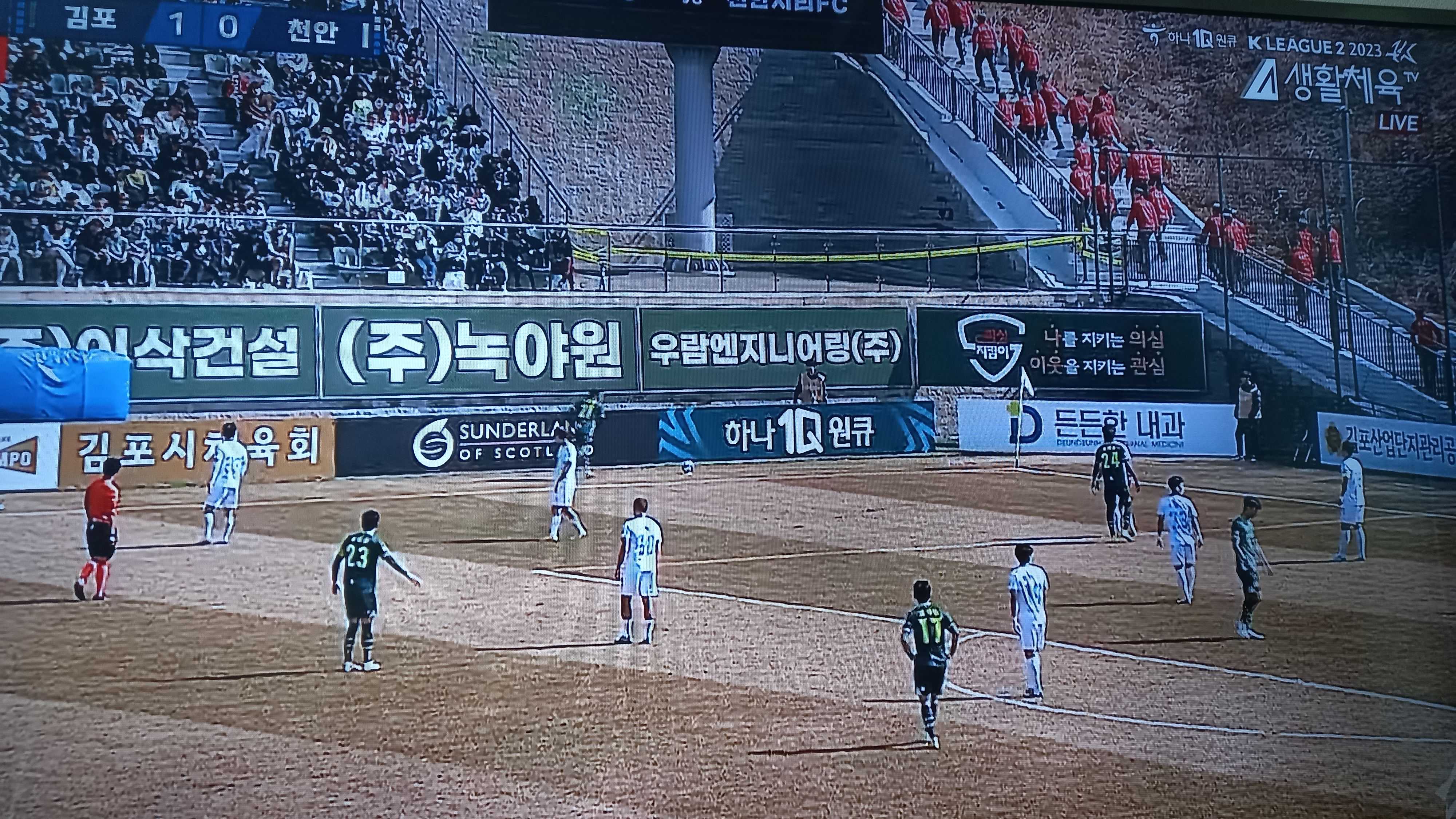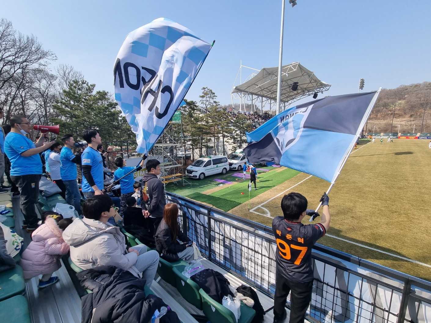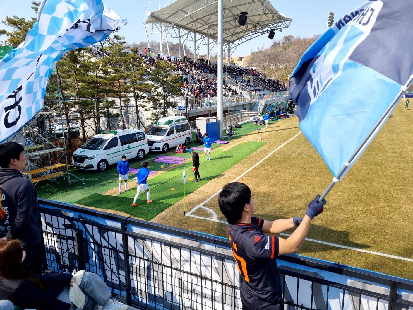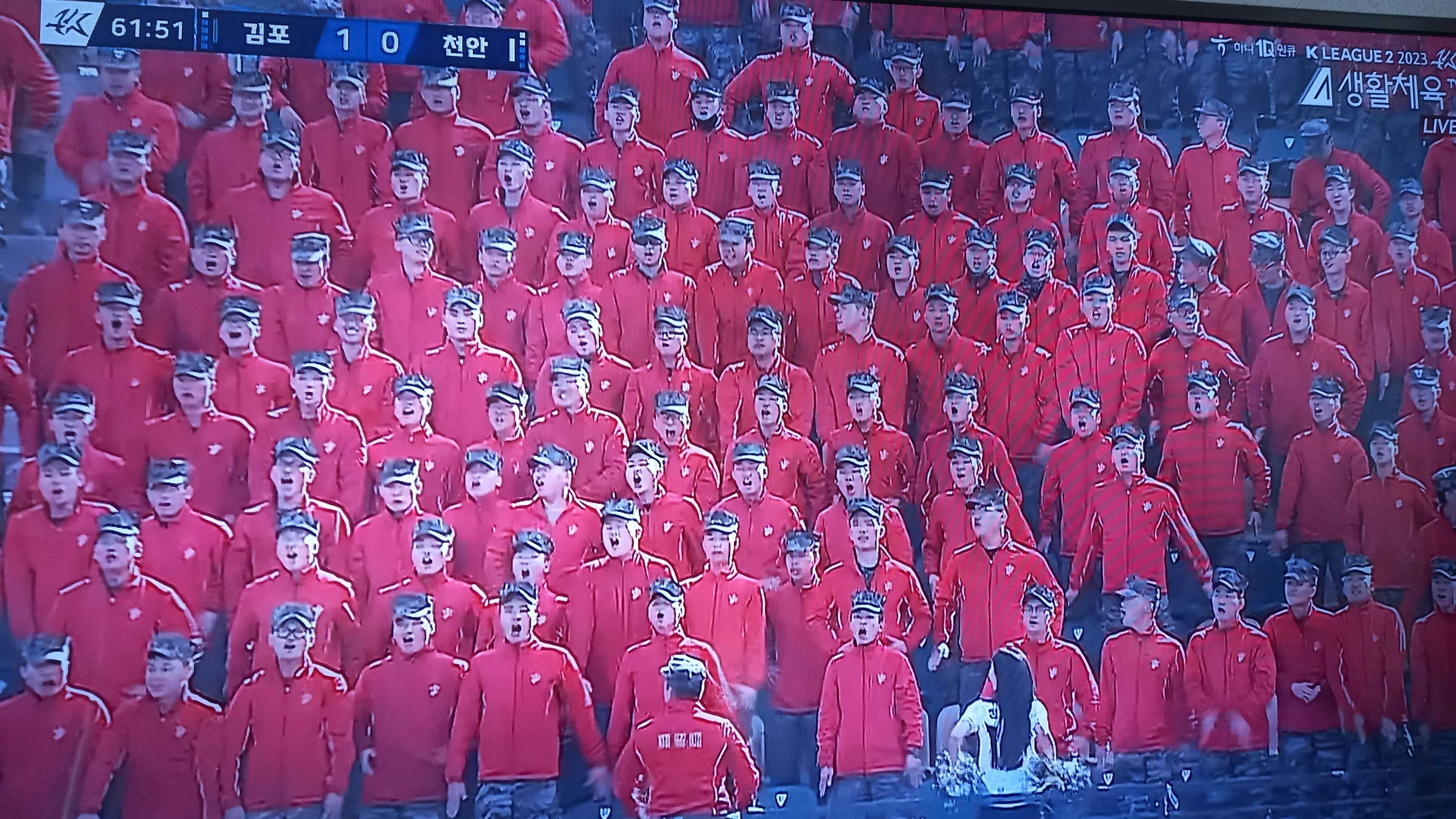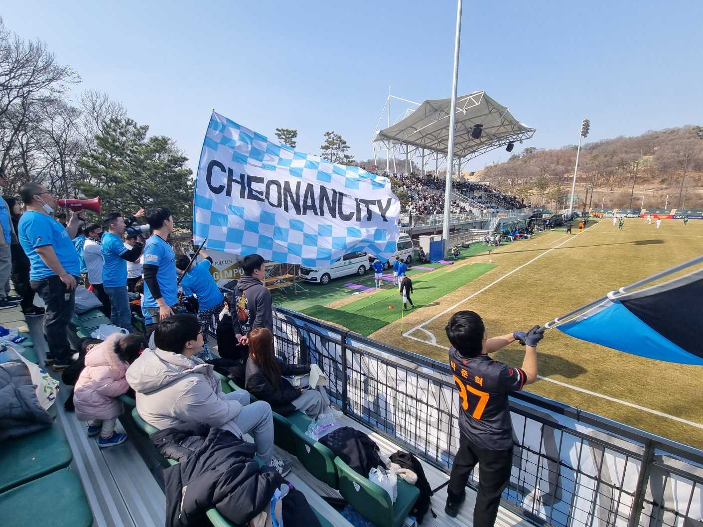 海兵隊のせいで、天安シティFCの応援団は隅っこに追いやられて