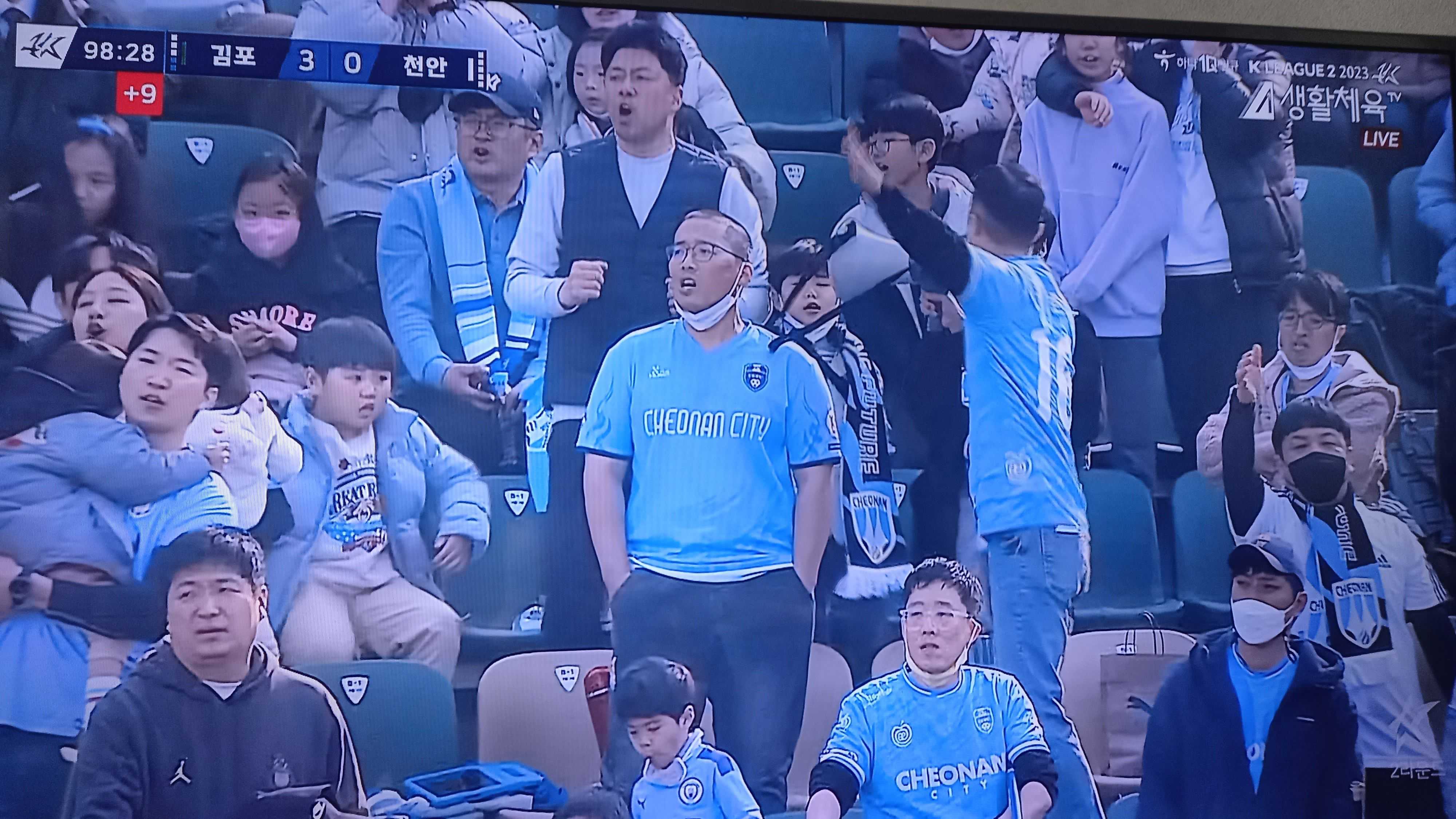 たまに、天安シティFCの応援席をテレビカメラが映してくれた。