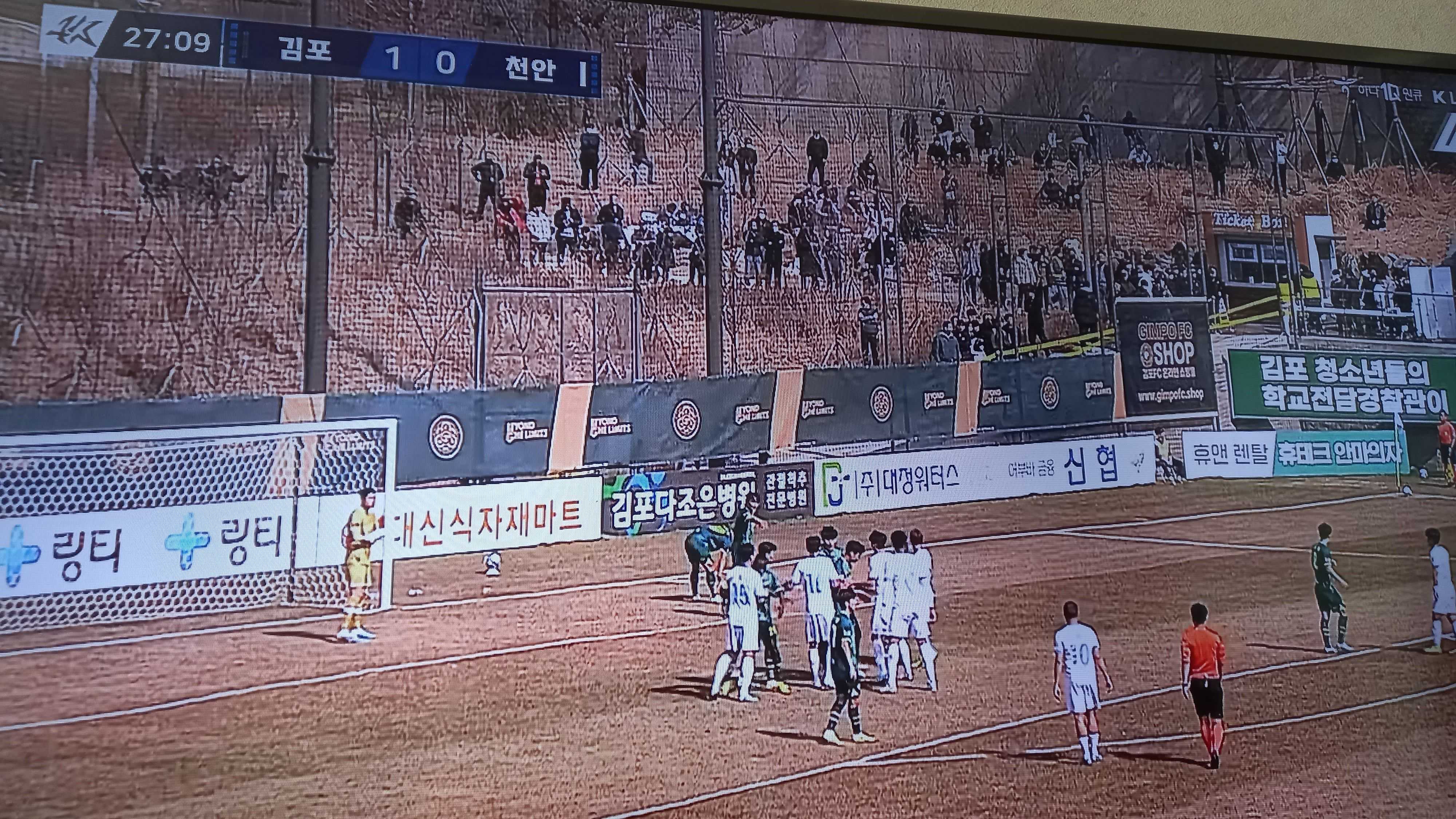 サッカー場の外から見てる金浦住民もたくさんいるようだった。