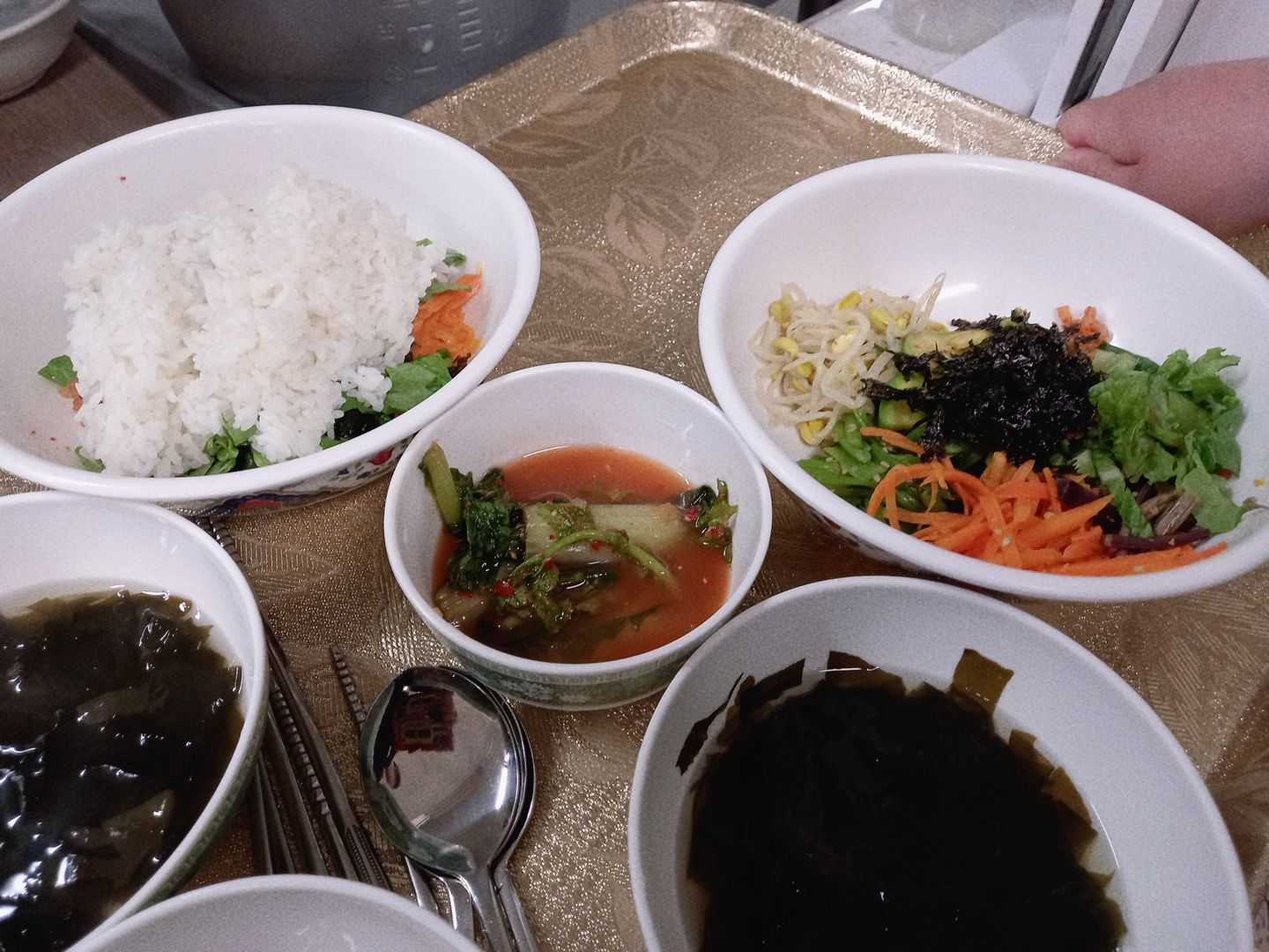 お寺のご飯はたいてい、肉無しのビビンバと、肉無しのワカメスープなんだけど、